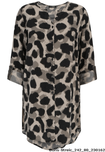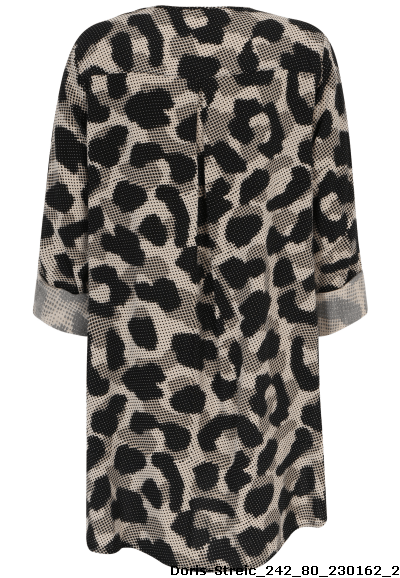 Blouse met V-hals. Lengte: 86 cm. Print in de kleuren: beige, zwart, grijs.