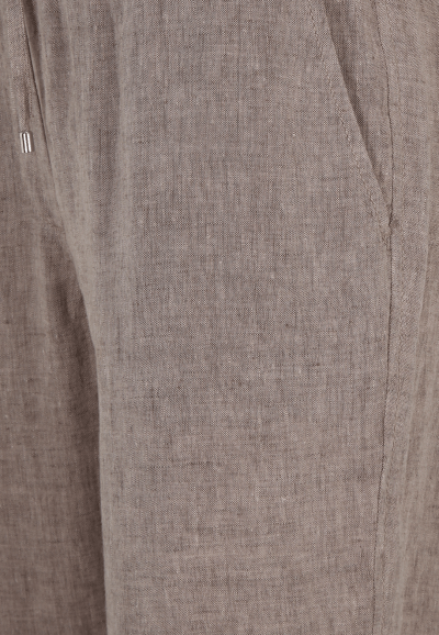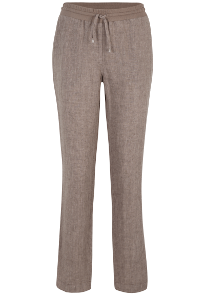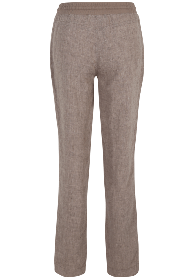 Comfortabele gemeleerde zankdkleurige broek met elastiek in de taille. Steekzakken.