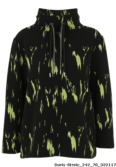 Opzetboord aan de hals met aantrekkoord. Lengte: 74 cm. Structuurstof met print in de kleuren: avocado, zwart.