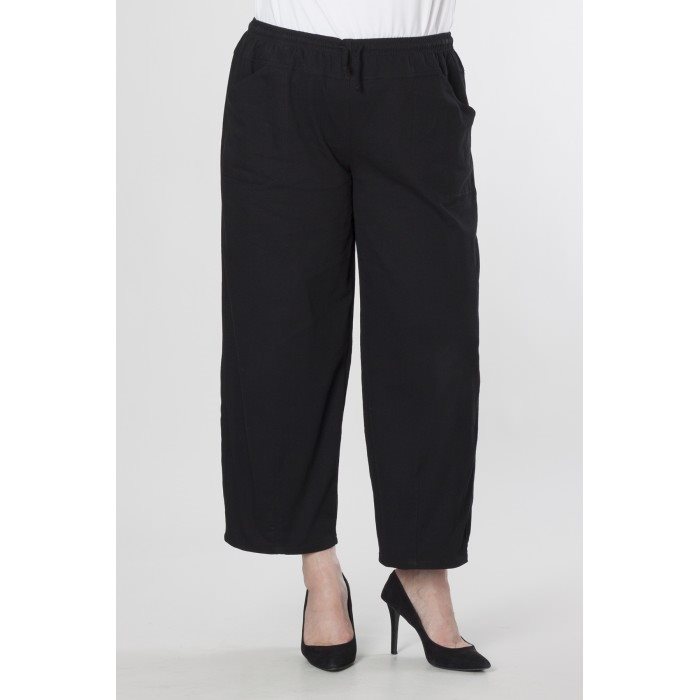 Super comfortabele maar ook een mooie elegante broek! Goed te dragen bij zowel een casual als geklede outfit. De ruime broekspijpen zijn onderaan iets versmald. De broek heeft 2 zakken voor en 2 achter. Elastiek in de taille. De kleur is donkerblauwe denim. Samenstellling: 70% katoen,26% polyester, 4% elstan.