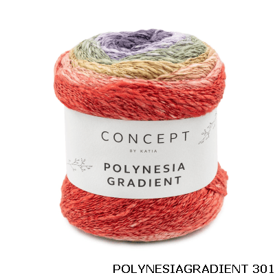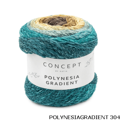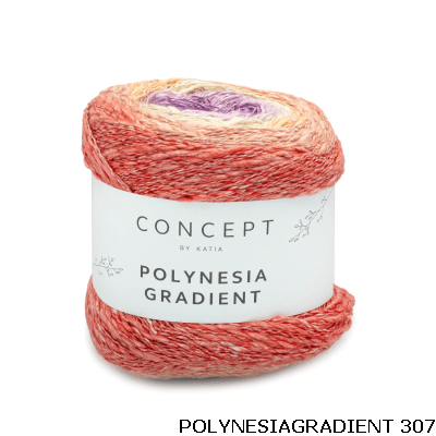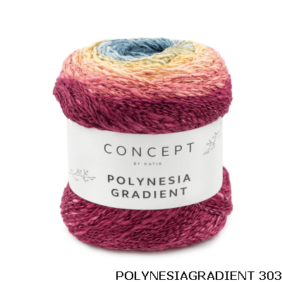 Probeer met Polynesië Gradient eens een damessjaal of een meisjesjurk te breien met slechts één bolletje cake.