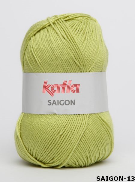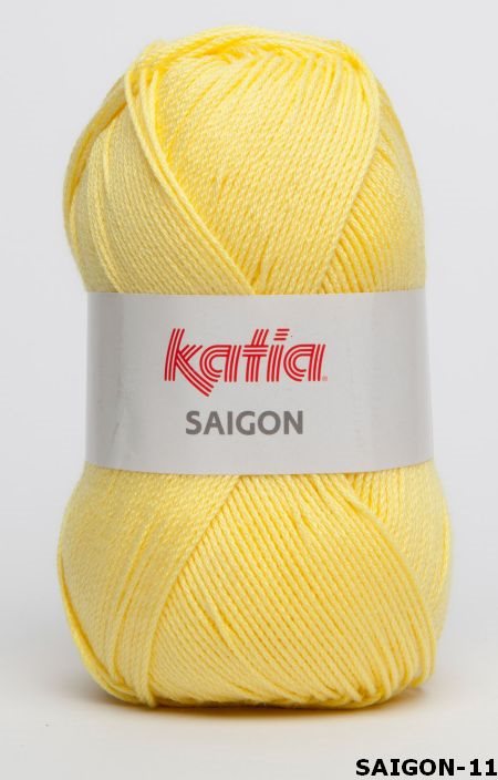 Katia Saigon is een veelzijdige breiwol en haakgaren, onder andere geschikt voor het maken van topjes en lichte truien, maar ook voor het haken van kleurige woonaccessoires en knuffels. Dit garen is verkrijgbaar in een breed assortiment van kleuren. U kunt Katia Saigon verwerken met breinaalden 3,5-4 mm en haaknaalden 2-2,5 mm. Een bol van 100 gram bestaat uit ca. 300 m garen. Het is gemaakt van 100% acryl en wasbaar op 40 graden Celcius.