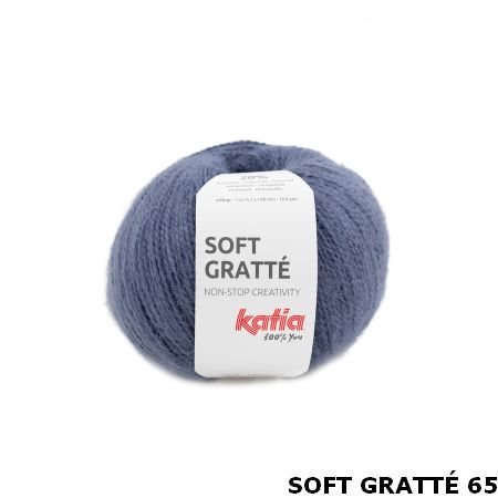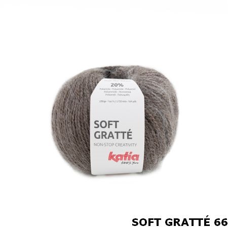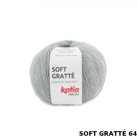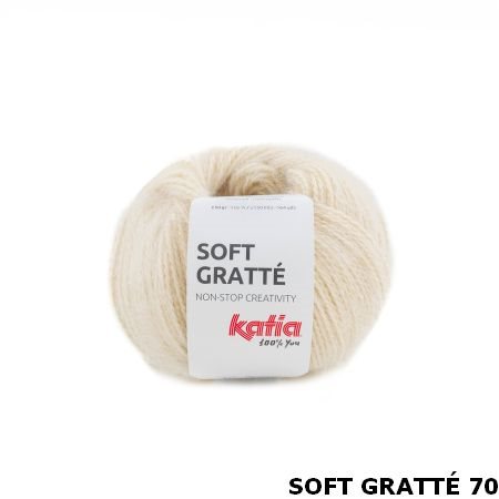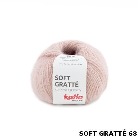 Soft Gratté is een delicaat garen met een geruwd aanzicht, zonder vezels van dierlijke herkomst in de samenstelling. Brei met ronde naald uw winterkleding of uw basisaccessoires voor dit seizoen met een subtiele, fluweelzachte textuur. Als u een gevoelige huid hebt en reageert op natuurlijke wol, kunt u met uw Soft Gratté toch gebreide kleding dragen die eruit ziet als mohair wol, zonder ongemakken of allergische reacties. Soft Gratté is gemaakt van 80% acryl en 20% polyamide. Een bol weegt 5o gram en bestaat uit 150 meter garen. Voor een damestrui met lange mouwen in maat 42 gebruikt u 7 bollen. Breinaalden 3,0- 3,5 mm. Stekenverhouding: 22 st x 28 nld = 10 x 10 cm met nld. 3,5. Deze wol kan in de wasmachine worden gewassen op 30 graden. U vindt hier de beschikbare kleurnummers van 61 tot en met 70:
