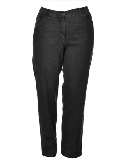 Zwarte broek Babsie Straight Leg van KJ Brand: 23020, 6020/001. Deze broek heeft een 5-pocket model en wijde bovenbeen ruimte. Elastiek in de taille en een ritssluiting met knoop. Materiaal: 88% katoen, 10% polyester, 2% elastan.