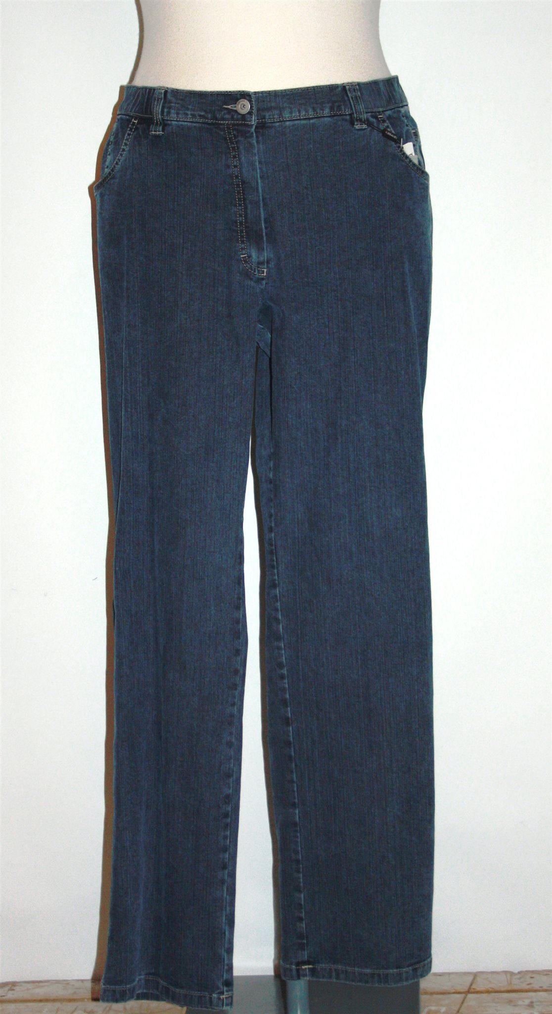 Kj Brand 5-pocket jeans: Betty K Straight Leg 24618 6020/606. Korte matenDeze spijkerbroek heeft rechte pijpen, comfortabele bovenbeen wijdte en deels elastiek in de taille. Met ritssluiting en knoop. Materiaal: 88% katoen,10% polyester,2% elastan.