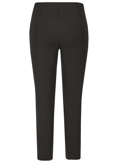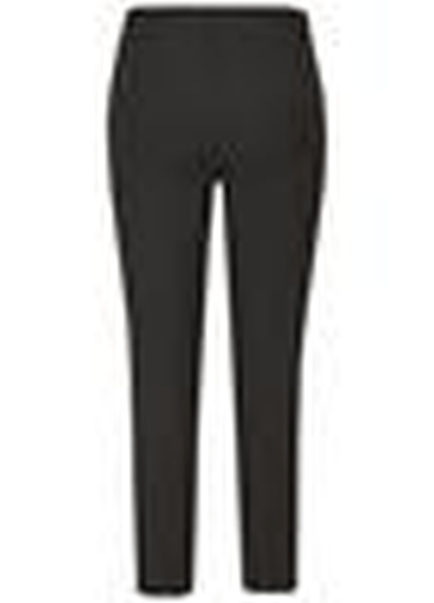 Kj Brand broek Susie 273304 9321/001. Een effen zwarte, soepele broek met elastiek in de taille. Aan de binnenkant van de tailleband zit een klein zakje. De pijpen lopen iets toe, maar niet smal. Materiaal: 100% polyester.