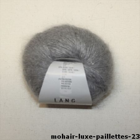 Mohair luxe paillettes van Lang yarns. Een zacht garen met subtiele zilverkleurige pailletten. 25 g = ca. 145 m. Stekenverhouding: 22 steken x 36 naalden = 10 x 10 cm. Breinaalden 3 – 3,5 mm. Samenstelling: 41% superkid mohair, 37% wol, 20% zijde, 2% polyester.