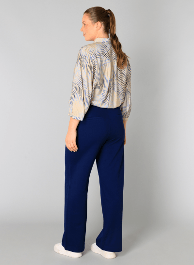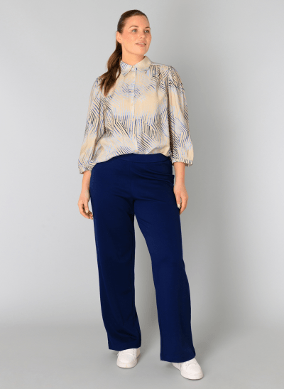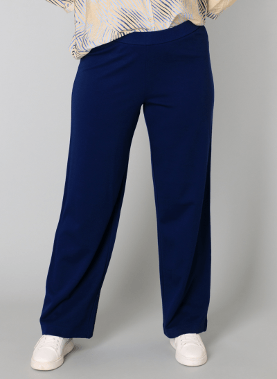 Pantalon in een stevige stof van Yesta in een wijd, recht model. Deze broek heeft een brede elastische tailleband Lengte 32 inch. 68% Viscose 27% Nylon 5% elasthan