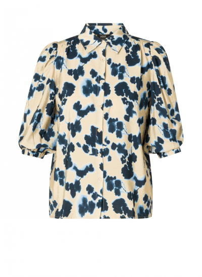 Met zijn blauwe bloemenprint op een beige basis is deze blouse een eye-catcher voor de lente. De pofmouwen en halflange mouwen met elastiek voegen een moderne twist toe, terwijl het viscose-nylon materiaal zorgt voor een zacht en ademend gevoel. Lengte 72 cm 80% Viscose 20% Nylon