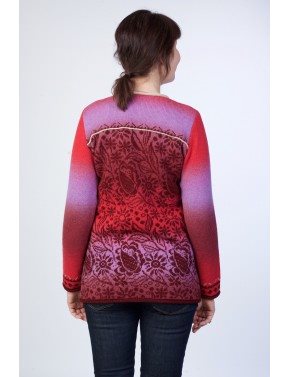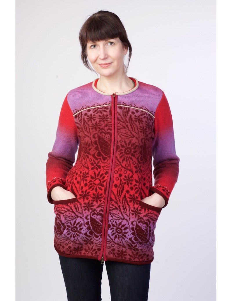 Mooie wollen vest medium Lengte met bloemen en rits