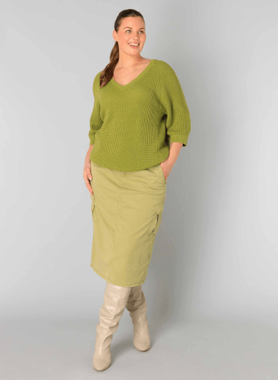 Deze trui in een frisse kleur heeft een comfortabele V-hals en een relaxed fit. Het grove breisel in combinatie met het zachte materiaal maakt deze trui een perfecte keuze voor een casual maar stijlvolle look. Verkrijgbaar in de kleuren Light Khaki en Pastel Blue.