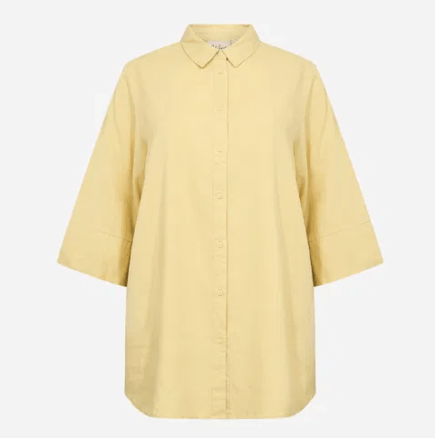 Leuke blouse met driekwart mouw 55% linnen 45% viscose. Verkrijgbaar in de blauwe kleur niet in GEEL blauwe kleur is andere foto