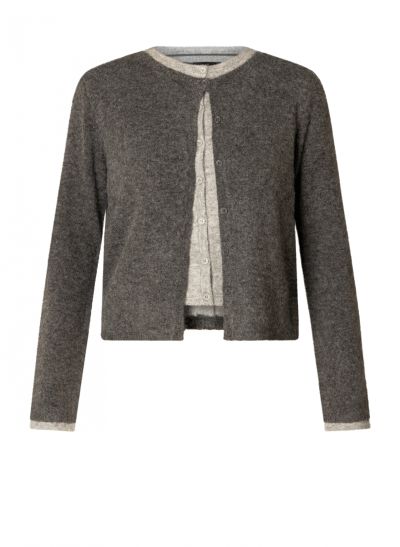 Vestje Freda heeft een speels effect dankzij de dubbele laag, waarbij de bovenkant vastzit en een leuk contrast creëert. Gemaakt van een zachte mix met polyester, PAN, nylon, wol en elastaan, zit hij comfortabel in een regular fit die makkelijk te combineren is.73% Polyester, 10% PAN, 10% Nylon, 4% Wool, 3% Elastane Lengte 65 cm
