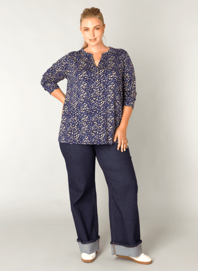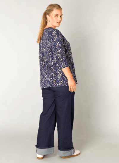 95% Ecovero Viscose, 5% Elastane Lengte 72 cm Jersey shirt Donkerblauw/multi colo Driekwart mouw en v-hals