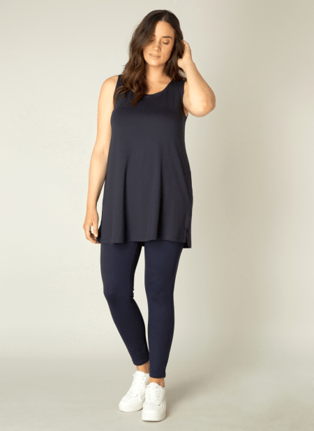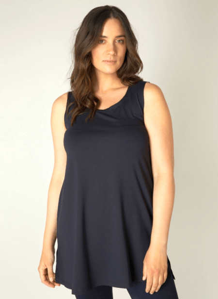 Abbigail, 7000002 van Yesta.. Regular fit. Base level curvy. Lengte 82,5 cm. Donkerblauwe top. 94% Viscose en 6% elastan.