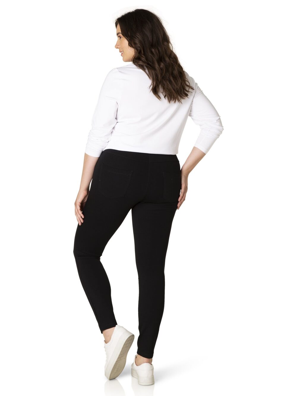 Roselinde is een slim-fit stretch tregging met een klein ruitje. Deze broek zit heerlijk door de toevoeging van elastane. In de taille een elastiek met een tunnel en een koordje. De zakken hebben stoere ritsen. Samenstelling: 79% Polyester, 16% Viscose, 5% Elastane