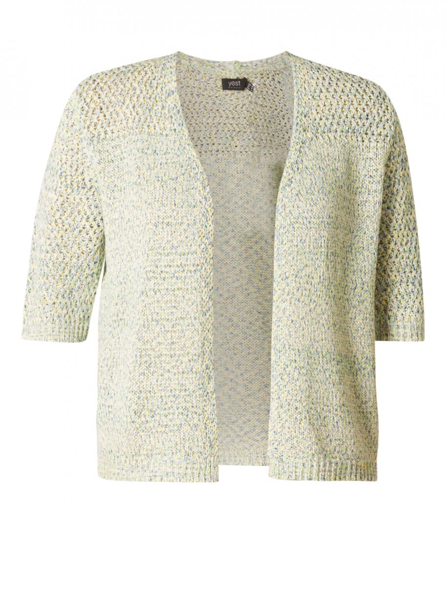 Losjes gebreid zomers vestje van Yesta in een openvallend model met korte mouwen. Lengte: 68 cm. Samenstelling: 75% Cotton, 25% Polyester