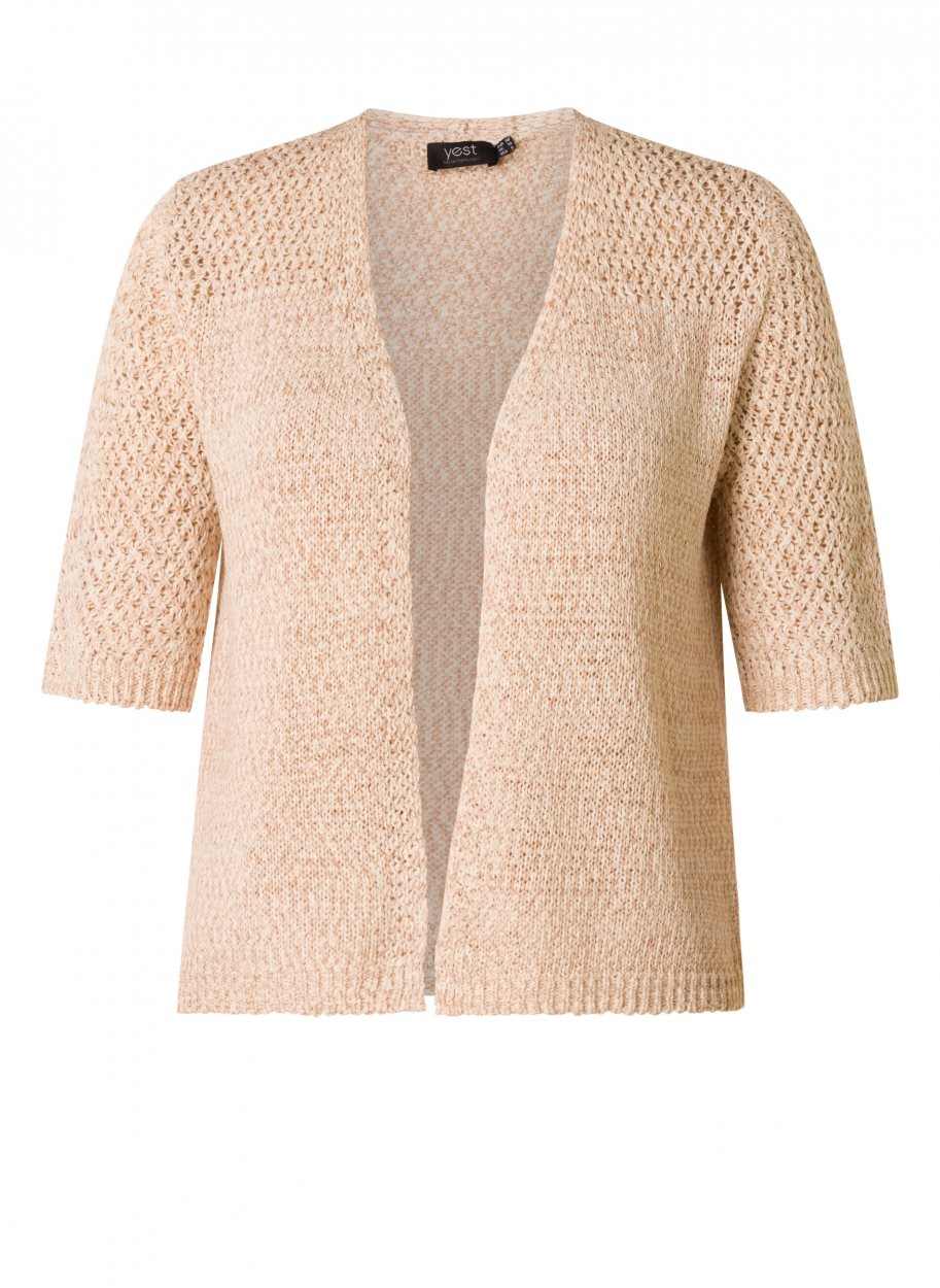 Losjes gebreid zomers vestje van Yesta in een openvallend model met korte mouwen. Lengte: 68 cm. Samenstelling: 75% Cotton, 25% Polyester