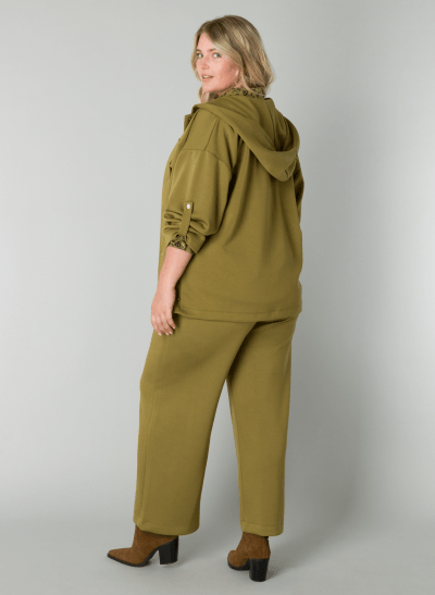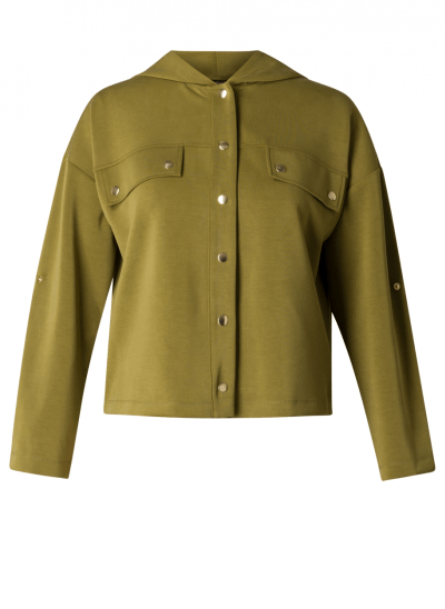 Capuchonvestje met knoopsluiting in een super zachte Viscose jersey mix. Verkrijgbaar in de kleuren Black, Avocado Green en Dark Camel. Lengte 70 cm